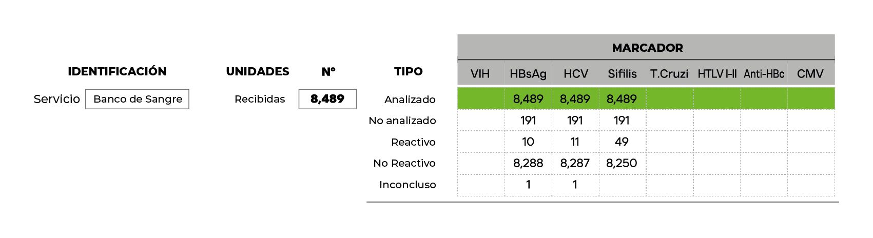 Esta sección destaca la detección de marcadores infecciosos para garantizar la seguridad de la sangre y el cumplimiento de las normas.